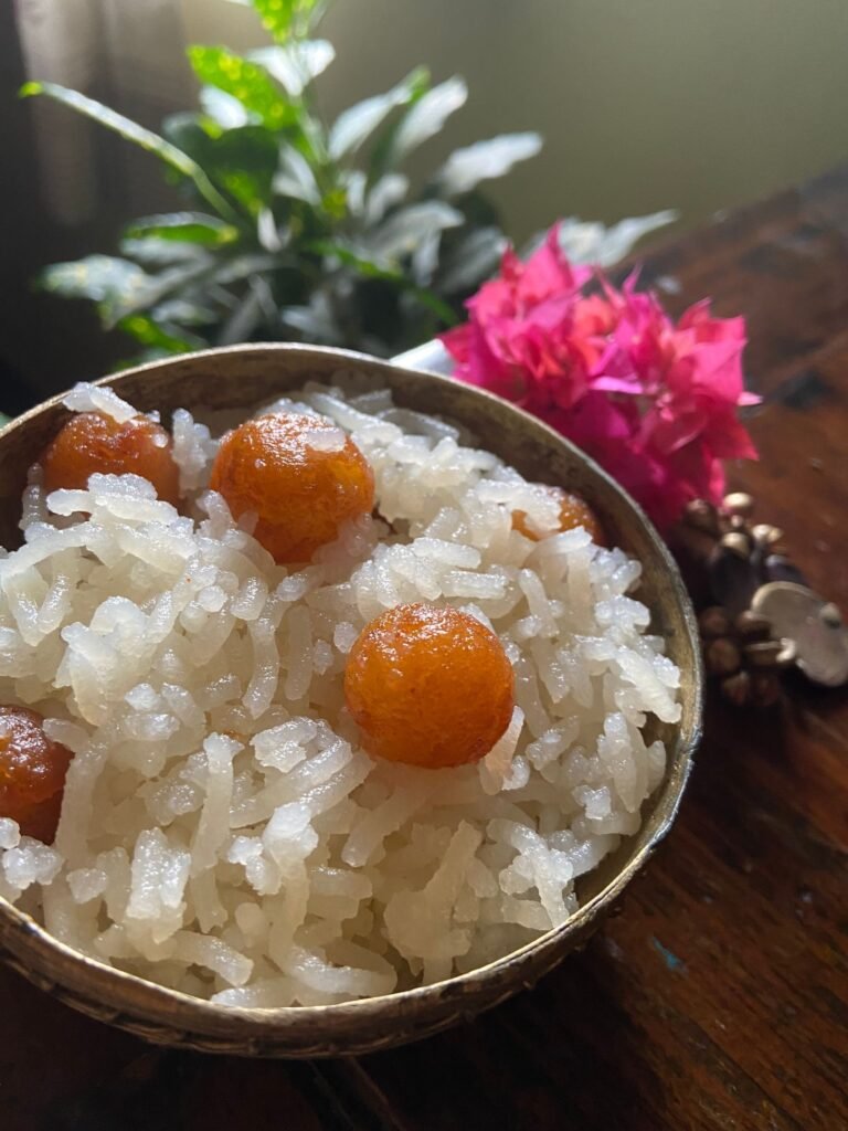 Traditional Serving: Often served alongside Mihidana as a contrasting pair – one yellow and crispy, the other white and soft.